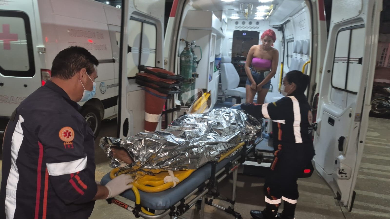 Durante o percurso, o veículo foi interceptado por uma equipe do Serviço de Atendimento Móvel de Urgência, que assumiu o atendimento, realizou os procedimentos de emergência e estabilizou a vítima.