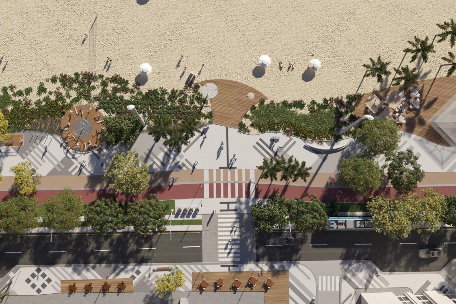 A revisão do projeto ampliou significativamente a arborização prevista inicialmente. Atendendo a pedidos de moradores e turistas, o novo plano mais que dobrou a quantidade de árvores, com um aumento de 118% em relação à proposta original. A medida busca oferecer mais sombra, conforto térmico e maior integração do passeio público com a natureza.